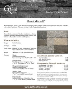 Mount Mitchell creates a look of exquisite grandeur with its contrast of light to dark grays and deep blues to blacks with a hint of rust tones. This stone provides a look of unparalleled opulence.